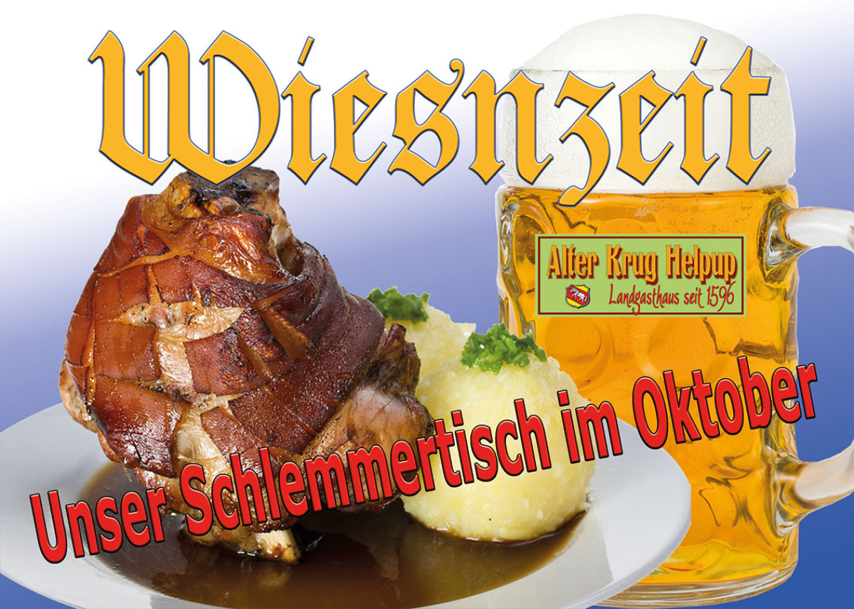 Es erwarten Sie Obatzder, Radi, Weißwurst, Leberkäs, Spanferkelhaxen, Bayrisch Creme und vieles mehr.