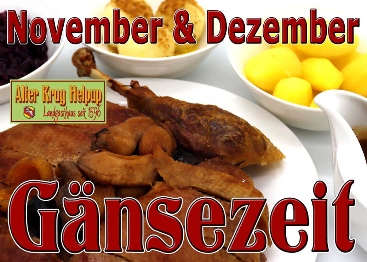 Im November und Dezember servieren wir wieder unseren allseits beliebten Gänsebraten.